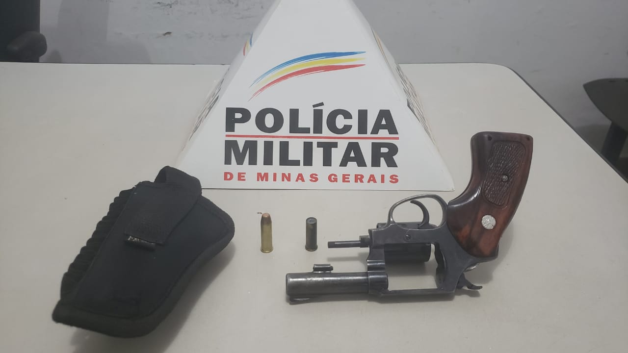 Segundo a Polícia Militar, durante abordagem em um estabelecimento comercial, os militares observaram que um homem, ao perceber a presença policial, tentou ir em direção ao banheiro em atitudes suspeitas. Ao ser abordado e submetido à busca pessoal, foi localizado na cintura dele um revólver calibre 38 carregado com duas munições.