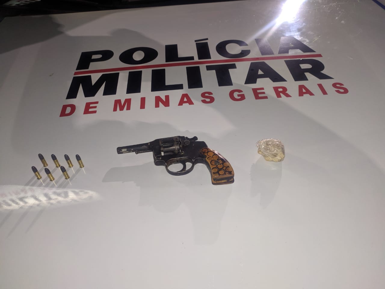 O homem, ao perceber a presença dos militares tentou dispensar uma sacola com algum objeto. Na embalagem foi localizado um revólver calibre 22 com sete cartuchos calibre 22 intactos e uma pedra bruta de crack.