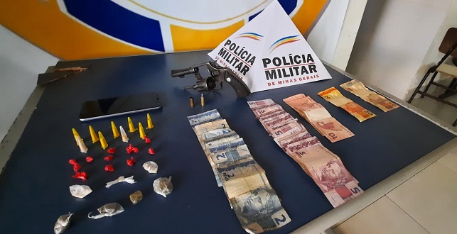 Como havia a suspeita de tráfico de drogas, uma equipe da ROCCA foi chamada e após buscas localizaram porções de droga, um revólver calibre 32 e R$201 em dinheiro.