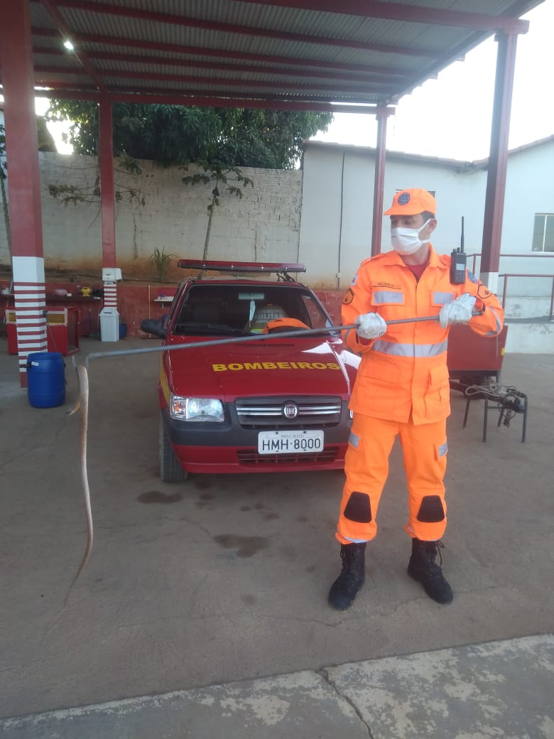 Segundo a Polícia Militar, a cobra com aproximadamente 1,20 metro estava no interior da residência, colocando em risco os moradores, dentre eles duas crianças.