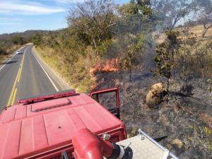 Montes Claros: Bombeiros combatem incêndio em vegetação às margens da BR-135
