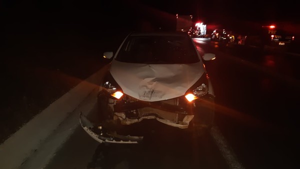 Segundo a Polícia Rodoviária Federa, havia óleo na pista e o veículo teria perdido o controle da direção e batido na traseira das duas motocicletas que levavam dois casais, sendo duas mulheres de 20 e 22 e dois homens de 24 e 29 anos. Os quatro tiveram ferimentos leves, foram atendidos pelo Samu e depois levados para a Santa Casa de e Hospital Universitário. A condutora do carro foi socorrida por terceiros. Quando o Samu chegou, ela já não estava mais no local.
