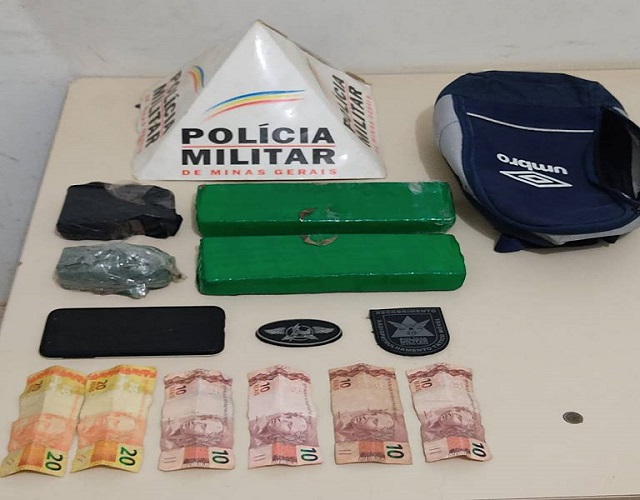 Durante a abordagem da PM o rapaz tentou se desfazer da bolsa, nela foram encontrados duas barras e dois tabletes menores de maconha, com cerca de  2kg da droga. Com ele também foi encontrado a quantia de R$80,00 em dinheiro e um aparelho celular. Na abordagem o homem confirmou a propriedade das drogas e confessou que  havia pagado por ela o valor de R$4.400,00. O suspeito foi preso e conduzido à Delegacia de Polícia Civil, com o material apreendido.