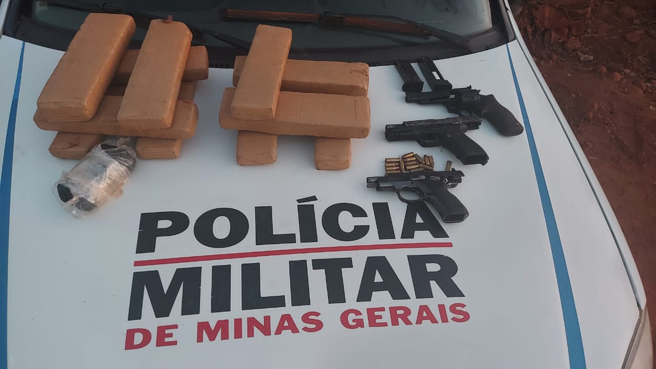 “Nessa madrugada, instalou-se uma operação e os militares então foram para zona rural de Guaraciama. O homem de 25 anos que tinha um mandado de prisão não quis se manifestar naquele momento. Os militares continuaram as buscas e já no meio do matagal encontraram um tambor e dentro dele foram apreendidos um tablete médio de cocaína, uma pistola 9 mm, uma pistola calibre .40, um revólver calibre .38 e 11 tabletes grandes de maconha, além de diversas munições”, explica o Capitão Michael Sthephan.