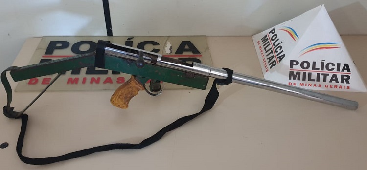 De acordo com as informações repassadas pela vítima, os policiais  realizaram patrulhamento pela Rua São Paulo no bairro Veredas, onde o homem foi localizado. Agressor foi abordado e no interior do porta-malas do veículo, foi localizada uma espingarda de fabricação artesanal calibre 12.