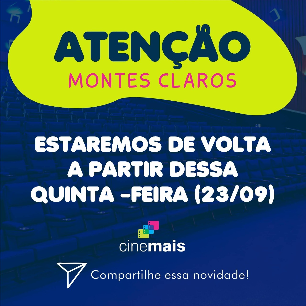 Após um longo impasse com a Prefeitura de Montes Claros, a arte venceu, mesmo que tardiamente, o Cinemais irá voltar às atividades na próxima quinta-feira (23/09). Para isso, serão cumpridas todas as restrições exigidas pela Prefeitura.