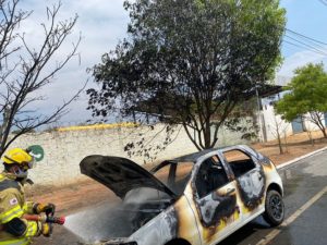 Carro pega fogo em avenida no Bairro Edgar Pereira, em Montes Claros
