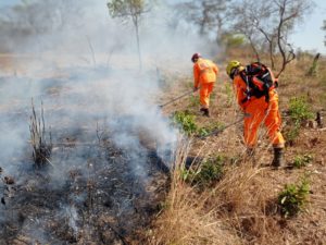 Bombeiros combatem fogo às margens da Rodovia BR – 135 em Bocaiúva