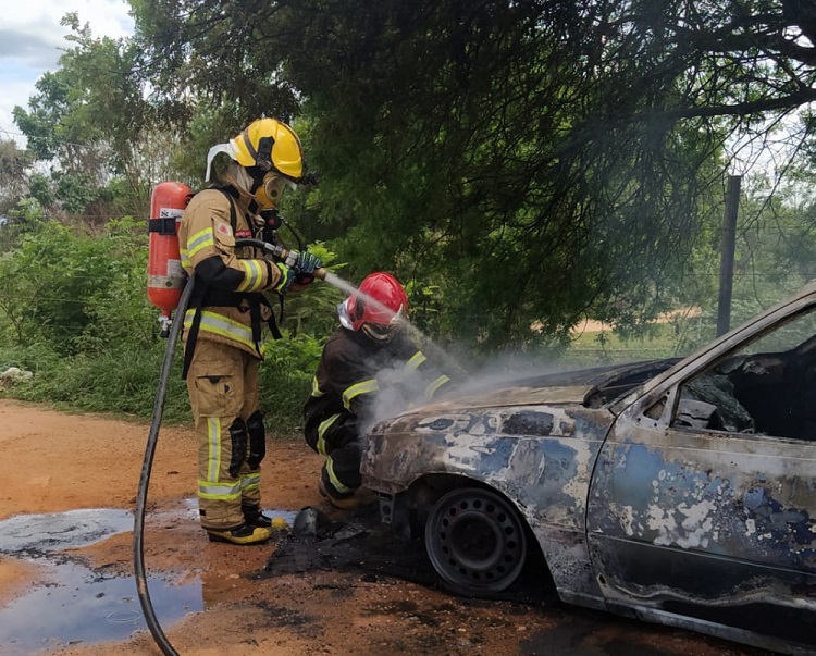 Segundo os Bombeiros, ao chegar no local foi possível constatar que se tratava de um automóvel Kadet, que estava estacionado às margens da via totalmente em chamas.