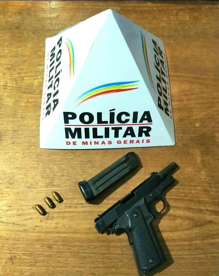 Segunda a Polícia, durante averiguação de denúncia os militares localizaram o suspeito em bar e durante a abordagem e revista pessoal foi encontrada na cintura do homem uma pistola. 380 e três cartuchos e um carregador.