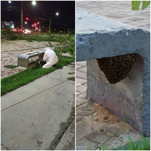 Enxame instalado em banco de praça assusta moradores do bairro Santa Lúcia, em Montes Claros