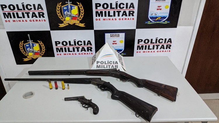 Um homem de 43 anos foi preso após denúncia de violência doméstica e porte ilegal de arma de fogo no início da noite deste domingo (12). As armas foram encontradas na casa do suspeito no Bairro Pedras Grandes, em Várzea da Palma, no Norte de Minas.