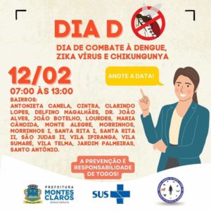 A Prefeitura Municipal de Montes Claros vai realizar, neste sábado (12), mais um “Dia D de Combate à Dengue “,
