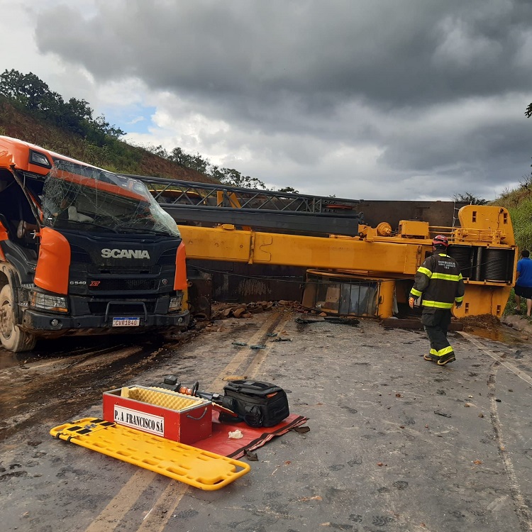 Segundo o Corpo de bombeiros, a carreta prancha, que transportava um guindaste pesando cerca de 41 toneladas tombou em meio pista no momento em que descia a serra em direção a cidade de Montes Claros. O motorista ficou preso às ferragens na cabine e precisou ser desencarcerado.