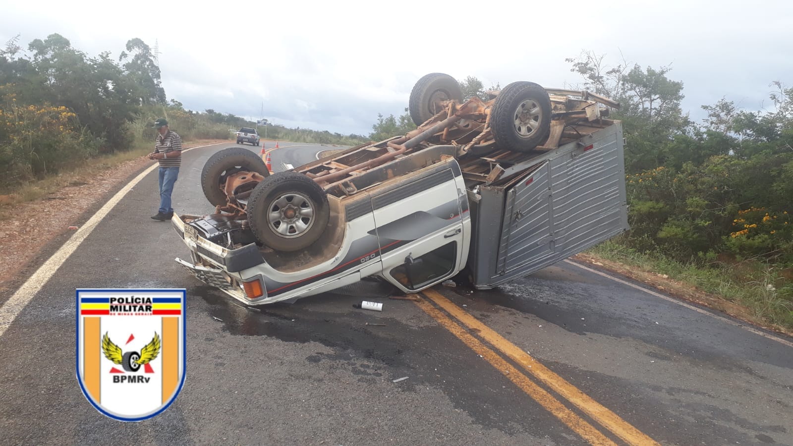 Segundo a Polícia Militar, a vítima deslocava em uma D-20 com carroceria baú sentido São João do Paraíso quando perdeu o controle da direção na altura do km 8 e tombou no meio da pista.