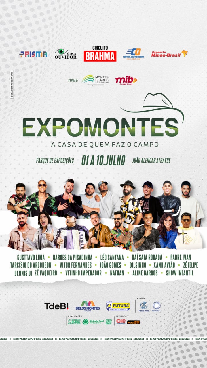 A partir desta sexta, dia 6 de maio, começa a venda de ingressos avulsos para os shows da Expomontes 2022, que acontece no período de 01 a 10 de julho, no Parque de Exposições João Alencar Athayde, em Montes Claros.