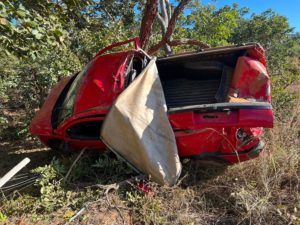 Carro capota e duas pessoas ficam feridas em acidente LMG-654, em Brasília de Minas