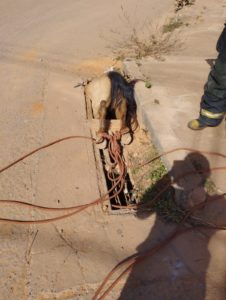Cavalo cai em Bueiro e é içado por pá carregadeira, no bairro Delfino Magalhães, em Montes Claros