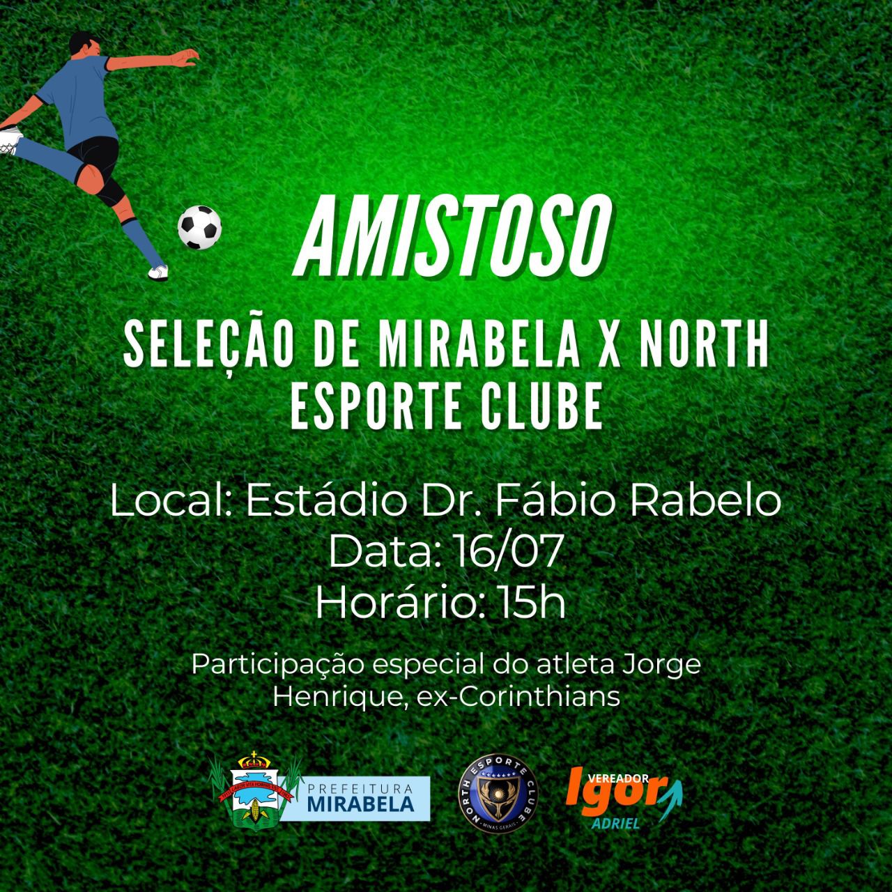 A Seleção Sub-23 de Futebol de Mirabela recebe, sábado (16), às 15h, os atletas do North Esporte Clube. A partida será no Estádio Dr. Fábio Rabelo e a entrada é gratuita.