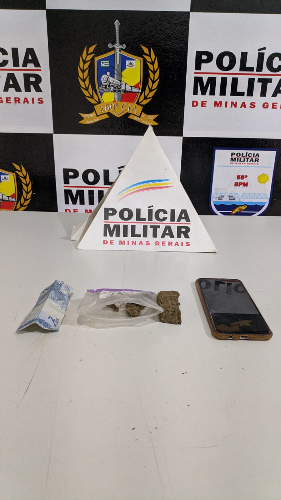 Com o suspeito foi encontrado a quantia de três reais e um tablete de maconha.
