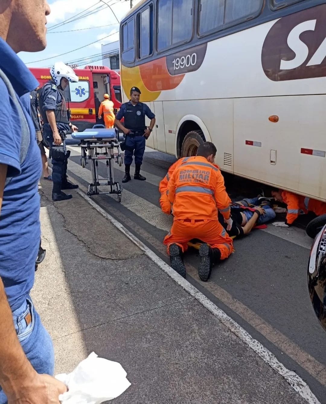 Motociclista fica gravemente ferido após ser atropelado por ônibus na Rodoviária de Montes Claros