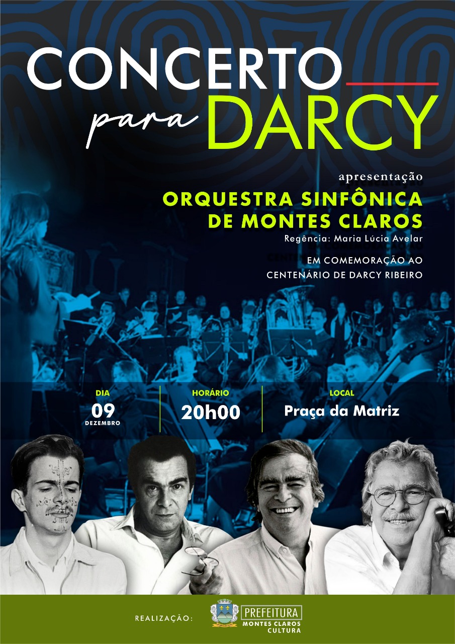 A homenagem será nesta sexta, 9 de dezembro, a partir das 20 horas, na Praça da Matriz, centro histórico de Montes Claros. A Orquestra Sinfônica de Montes Claros fará um concerto celebrando a vida de Darcy, com mais de 40 músicos e regência de Maria Lúcia Avelar. O evento será gratuito e contará ainda com circuito gastronômico com comidas regionais e um telão de led que vai apresentar fotos e frases ilustrando o pensamento do intelectual.Para Júnia Rebello, diretora de Projetos e Eventos da Secretaria Municipal de Cultura e organizadora do concerto, a homenagem é, mais do que importante, necessária. “Darcy foi uma figura nacional, que trouxe coisas inovadoras ao pensamento brasileiro”, conclui.