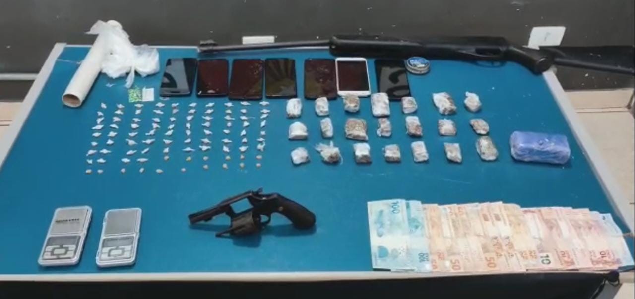 Ainda durante a operação, também foram realizadas buscas em outro endereço, no bairro Nossa Senhora Aparecida, onde os militares apreenderam 21 tabletes de maconha; uma balança; um revólver calibre .38; uma espingarda de pressão; e a quantia de 700 reais em dinheiro.