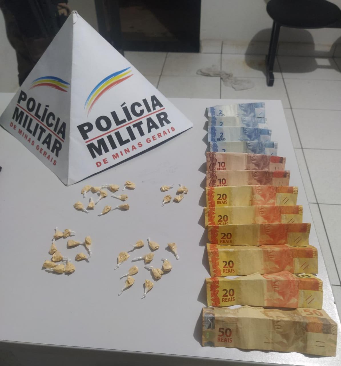 De acordo com a Polícia Militar, a Equipe de ROCCA 11 Cia Ind PE, recebeu informações de que havia envolvidos com o tráfico de drogas na Rua Marcos Ribeiro, Bairro Santos Reis. A equipe deslocou ao local e ao chegar no endereço, após buscas foram apreendidos 34 papelotes de cocaína, R$ 180 em dinheiro e dois celulares.
