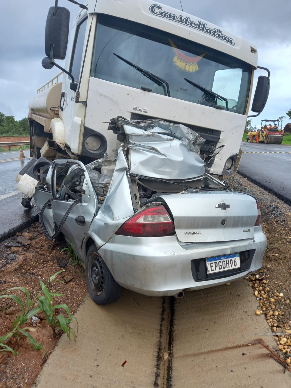 Com o impacto, o carro foi parar debaixo do caminhão-pipa. A Polícia Militar Rodoviária compareceu no local e segundo e controlou o trânsito.