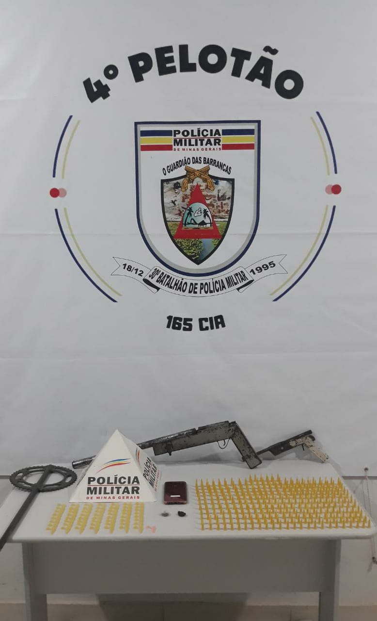 A PM foi ao local e abordou os dois suspeitos. Com eles foram encontradas uma arma de fabricação artesanal,  281 pinos de cocaína, além de 57 pinos vazios. No local havia apenas um ventilador, o que leva a entender que o barraco era utilizado apenas para o tráfico.