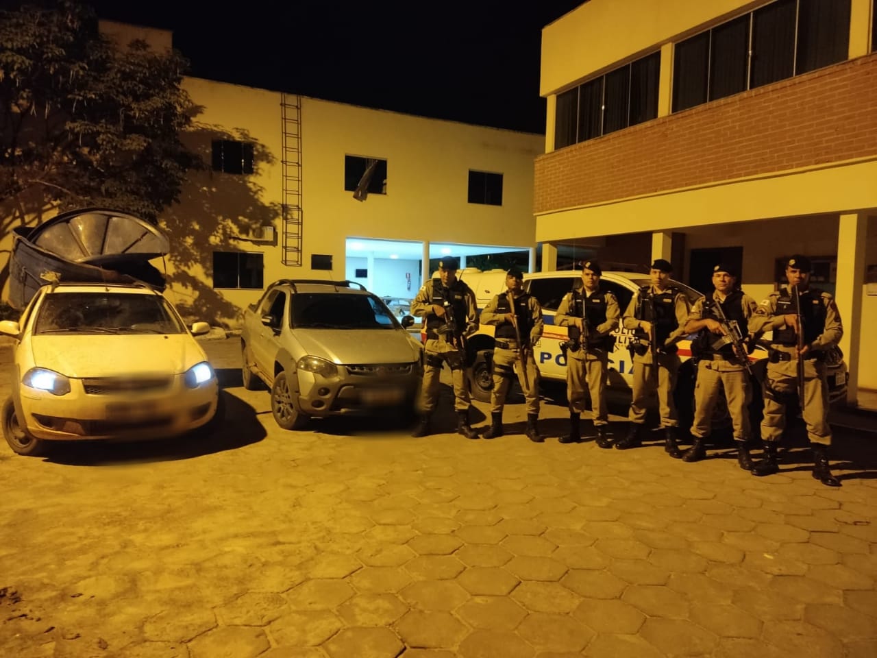 Durante patrulhamento, a equipe do tático móvel visualizou uma picape strada transportando a caixa d’água na cidade de Taiobeiras, onde foram abordados. Os suspeitos de 23 e 43 anos foram presos e após o veículo ser vistoriado pela Polícia Rodoviária Estadual foi descoberto que se tratava de um veículo clonado. Em continuidade a ocorrência, os policiais deslocaram até a residência do suspeito de 43 anos, na lagoa grande, em Taiobeiras, onde foi localizado e apreendido outra picape strada também adulterada.