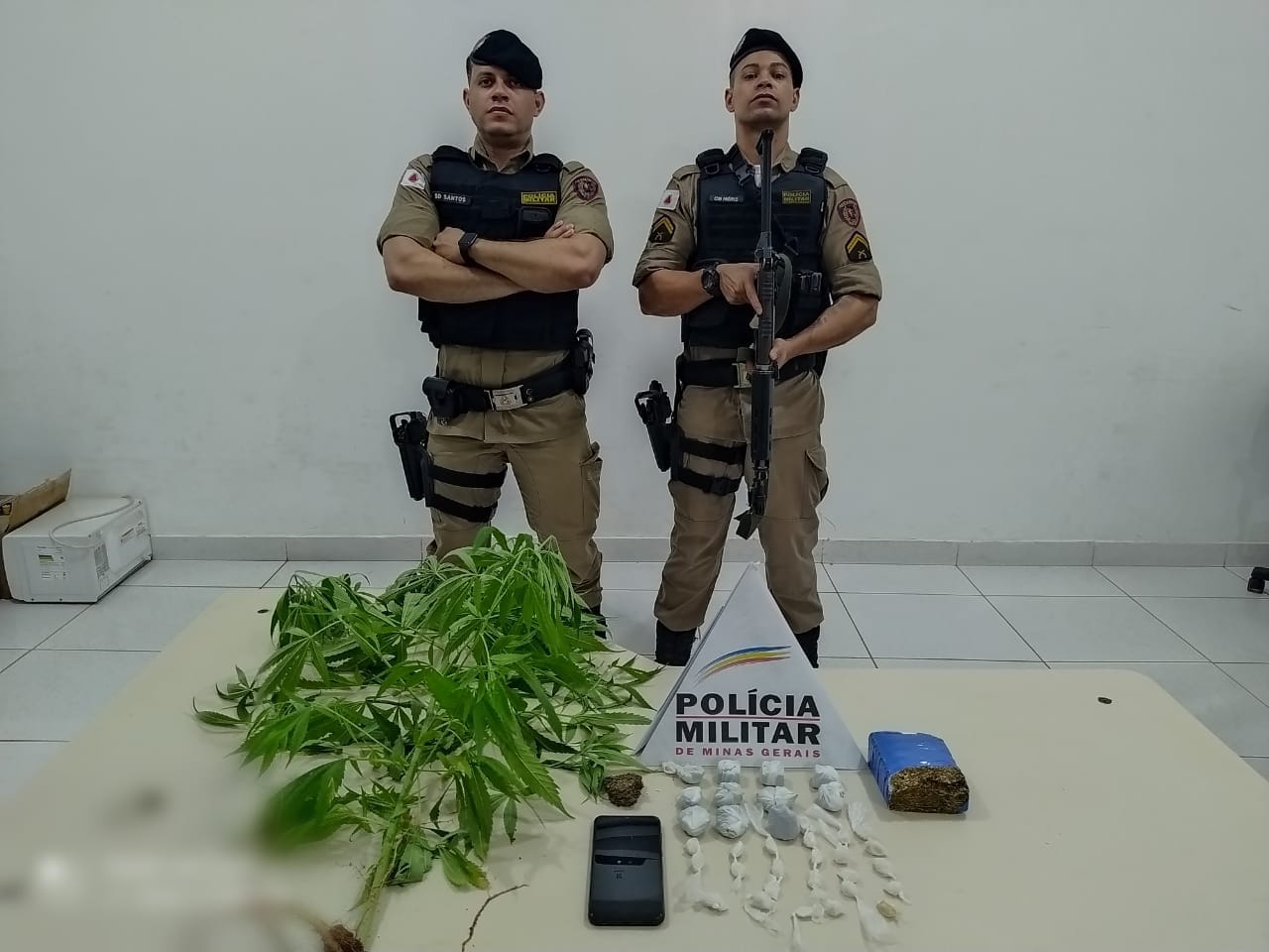 Em seguida, como o autor já é bem conhecido no meio policial por envolvimento com o tráfico de drogas, os policiais deslocaram até a residência dele, onde encontraram na área externa, um pé de maconha plantado em uma pequena horta. Já no interior do imóvel, foi encontrado ainda, dentro de uma mala, uma barra e onze tabletes de maconha, além de 22 papelotes de cocaína.