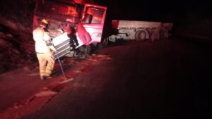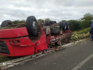 Motorista fica ferido após carreta colidir com barranco na BR-251, em Salinas