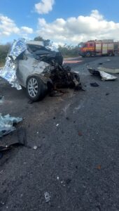 Carro bate de frente com carreta durante ultrapassagem e dois morrem, na BR-251