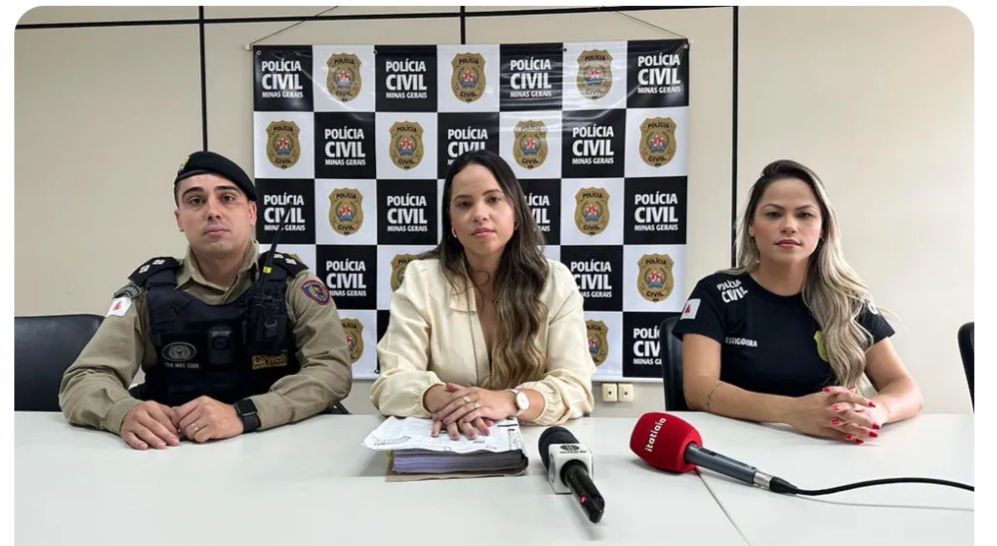 Polícias civil e militar concederam entrevista coletiva sobre o crime ocorrido no dia 16 de julho em Montes Claros, no Residencial Terras Jardins, quando um casal e a filha de 3 anos foram surpreendidos por criminosos armados dentro da casa.