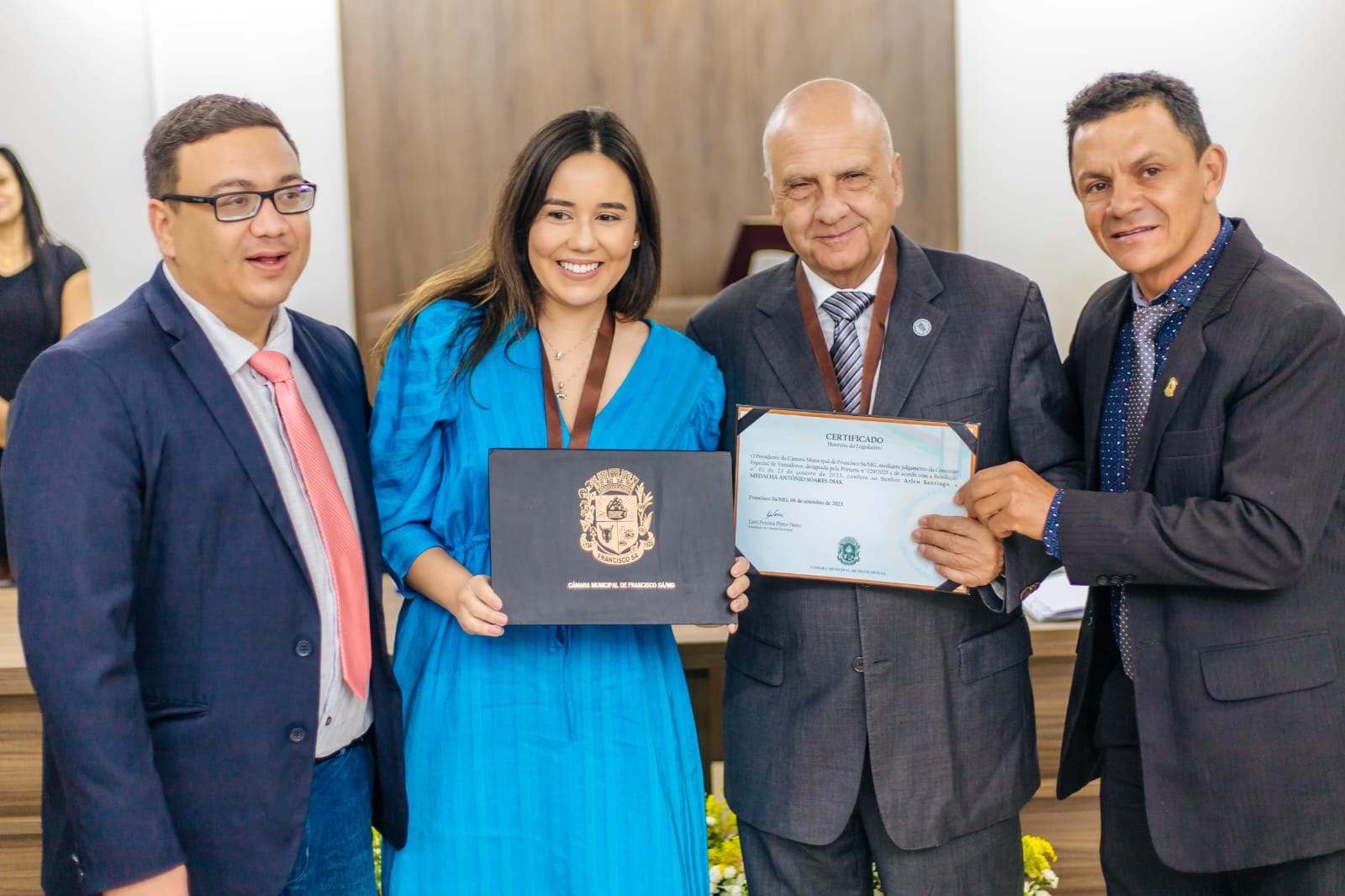 Durante as comemorações dos 100 anos da cidade de Francisco Sá, a Câmara Municipal realizou a primeira edição de entrega da mais importante comenda do legislativo municipal a partir de agora, a Medalha Antônio Soares Dias, de Honra a Francisco Sá. A solenidade superlotou a câmara no último dia 8 de setembro e homenageou, nesta primeira edição, dez nomes de benfeitores do município, incluindo o prefeito Mário Osvaldo Casasanta, o homem que revolucionou o Brejo. O criador da honraria e atual presidente da casa, Levi Pereira Neto era só alegria durante a cerimônia, afinal, Levi é reconhecido pelo amor que tem pelo Brejo e pela sua gente.