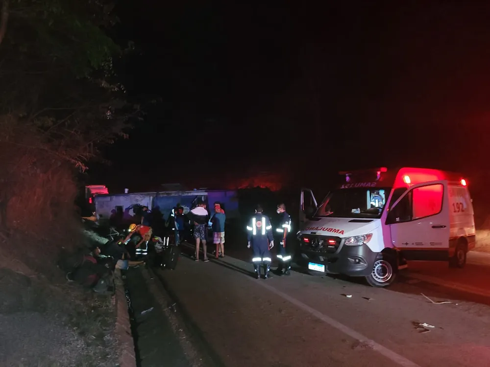 O Corpo de Bombeiros relatou que o ônibus subiu em um barranco e derrubou árvores antes de tombar. O veículo transportava aproximadamente 40 pessoas, e infelizmente, pelo menos uma delas perdeu a vida no local. Até o momento, o nome e a idade da vítima fatal não foram divulgados.