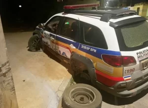Perseguição de moto termina em colisão com viatura da PM em Montes Claros, sem feridos
