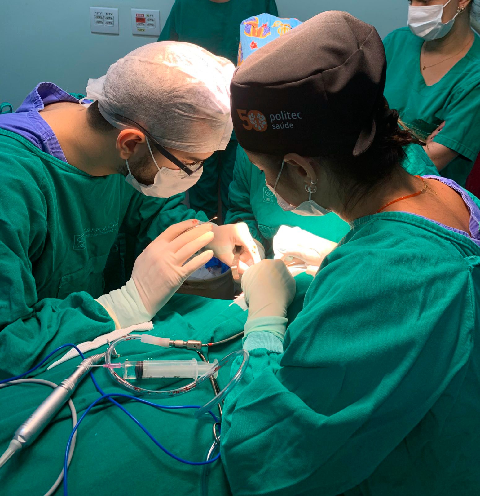 Uma coisa legal é que antes de fazer a cirurgia para colocar a prótese, os médicos podem fazer um teste no consultório. Isso ajuda os pacientes a entenderem como será depois da cirurgia.