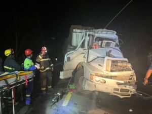 Bombeiros de Bocaiúva atendem a colisão com dois caminhões e um carro de passeio na BR 135