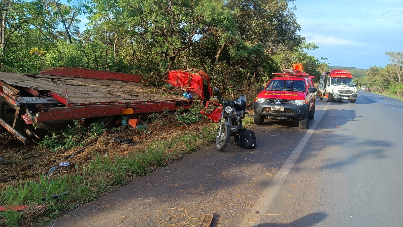 Na tarde de quinta-feira (26), por volta das 15h, uma equipe de resgate do Corpo de Bombeiros foi acionada para atender a um acidente envolvendo um caminhão que colidiu com uma árvore no quilômetro 46 da rodovia BR 365, após o trevo de acesso à cidade de Coração de Jesus.