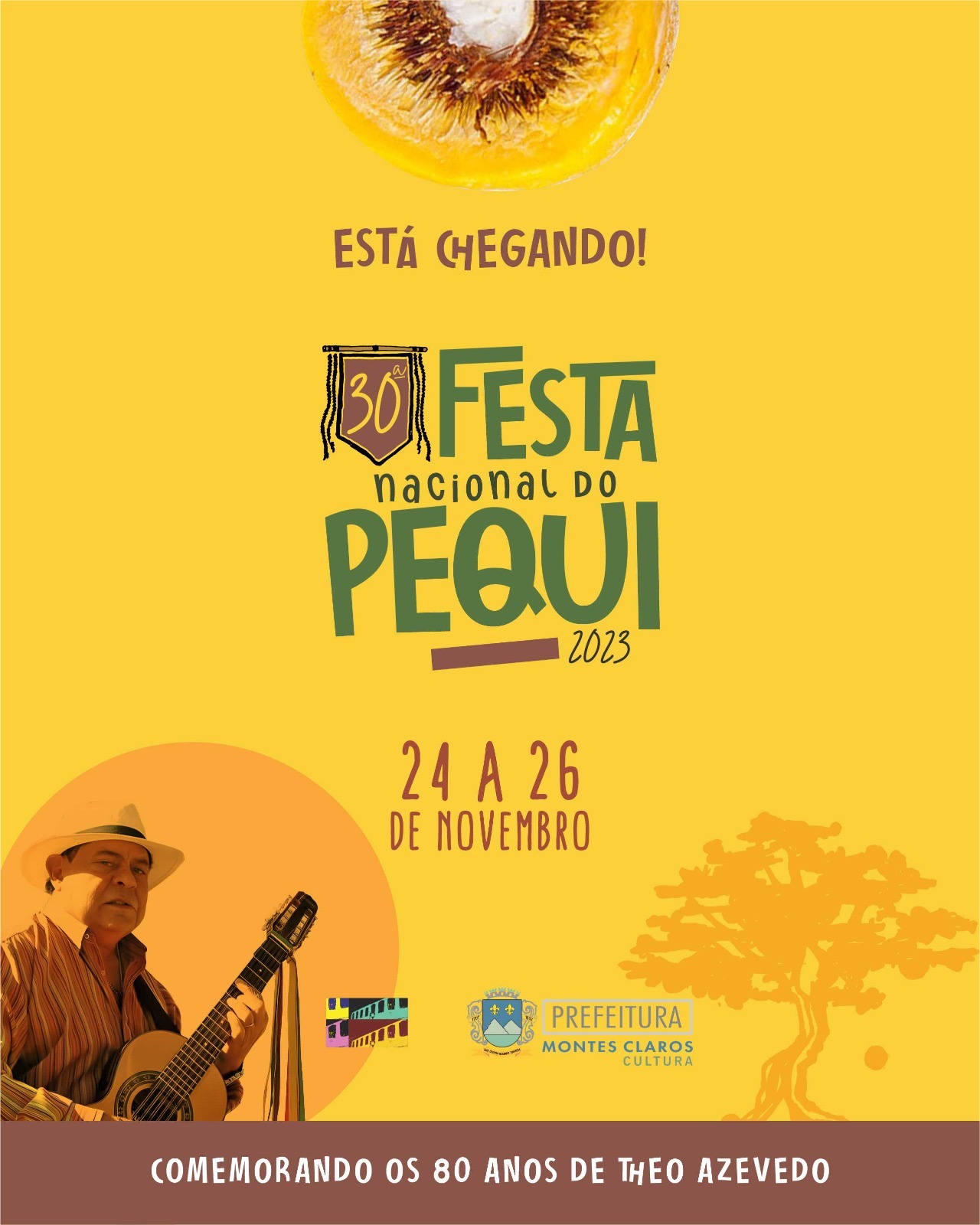 Na sexta-feira, dia 24, dá-se início às celebrações da 30ª Festa Nacional do Pequi. As atividades tomarão lugar na Praça da Matriz, distribuídas em diferentes espaços. No Espaço Arena, às 11 horas, o Projeto Trilha da Leitura, da Secretaria Municipal de Educação, proporcionará interações com os presentes. Às 20 horas, Téo Azevedo e convidados encantarão o público com o melhor do cancioneiro popular genuíno.