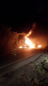 Pelotão de Janaúba: Bombeiros atendem incêndio em caminhão-cegonha na MGC 122