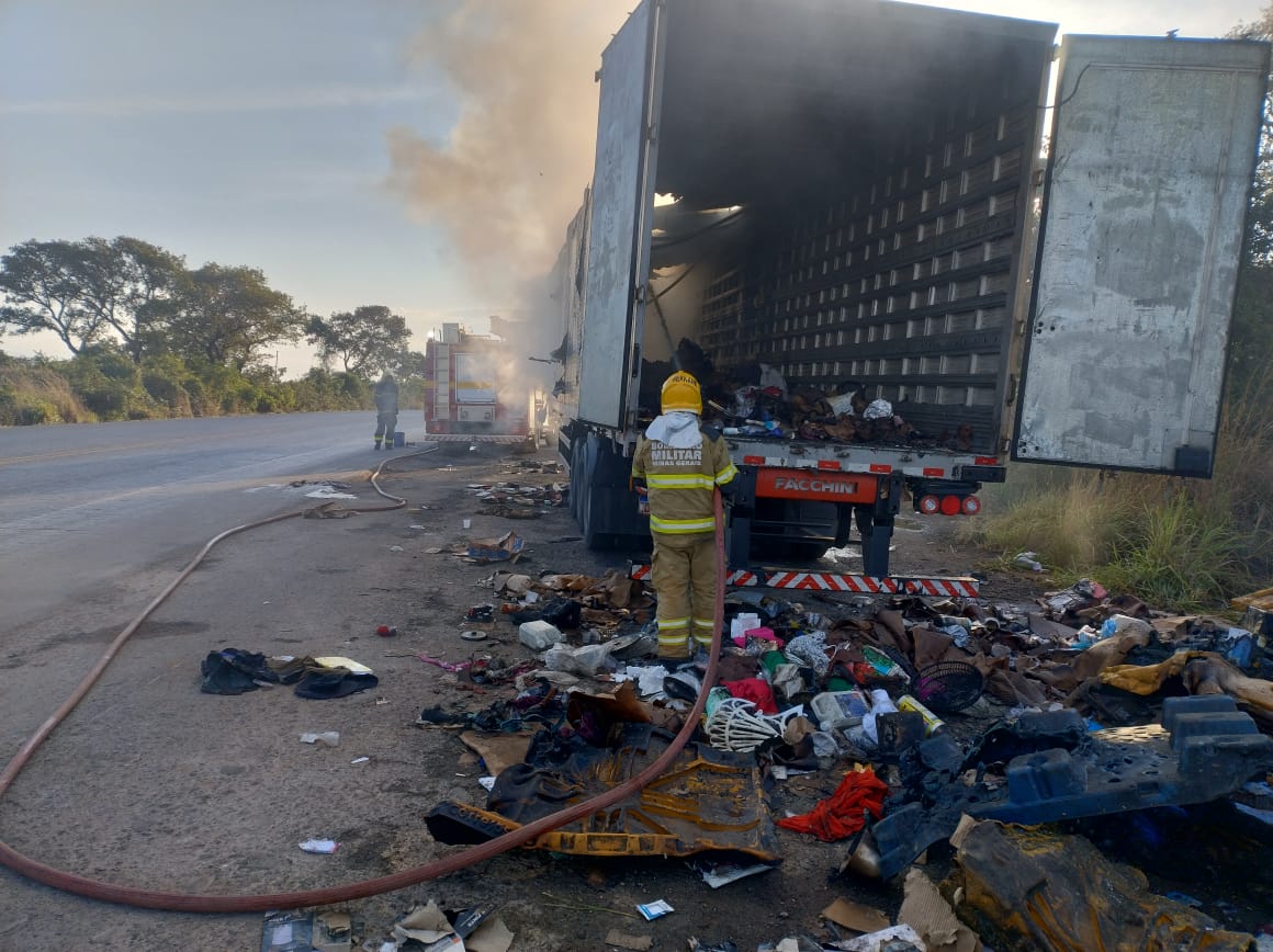 Incêndio em carreta dos correios: bombeiros de Francisco Sá agem rápido para controlar a situação na BR 251