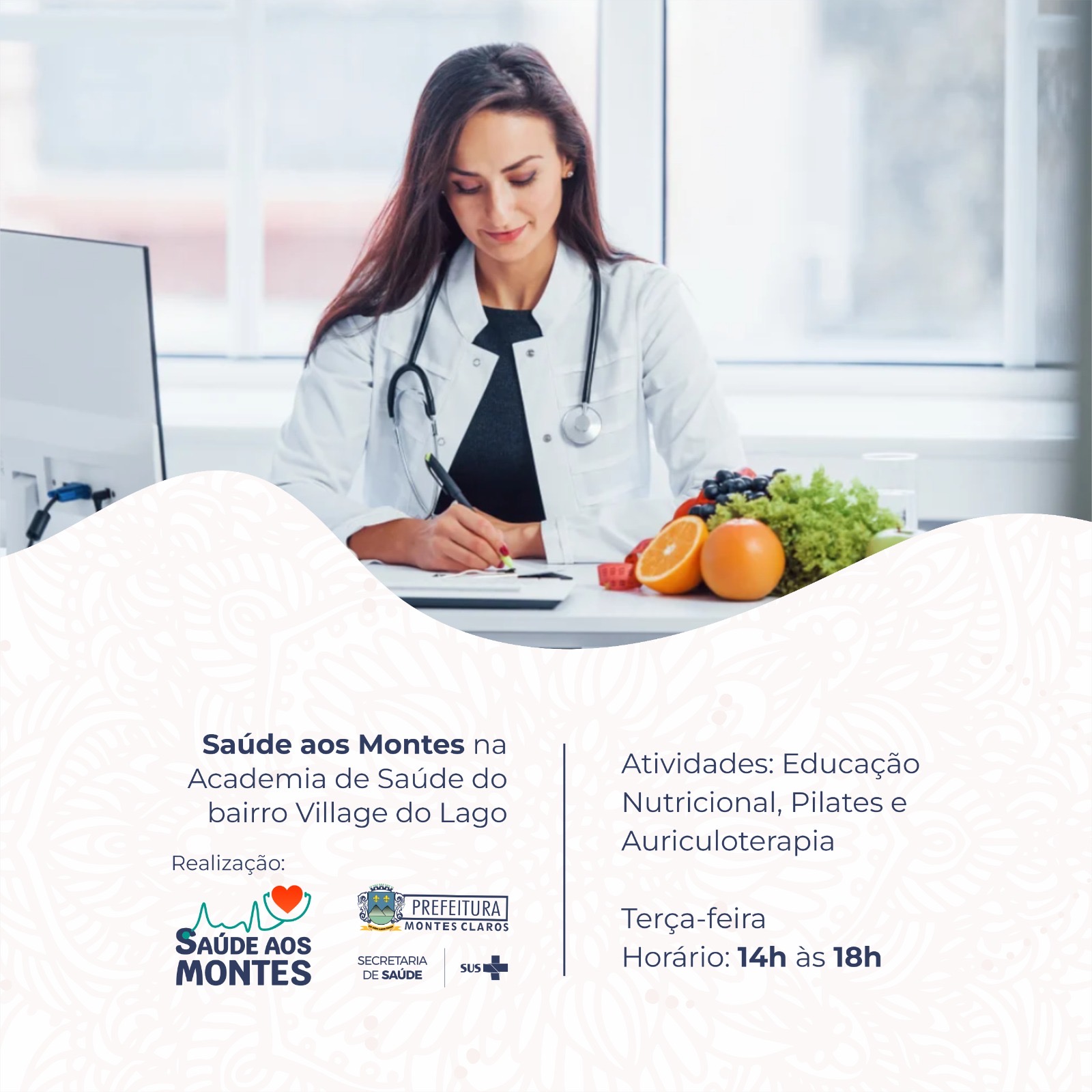 A Prefeitura de Montes Claros, por meio do programa “Saúde aos Montes”, disponibiliza sessões de Educação Nutricional, Pilates e Auriculoterapia na Academia de Saúde do bairro Village do Lago.