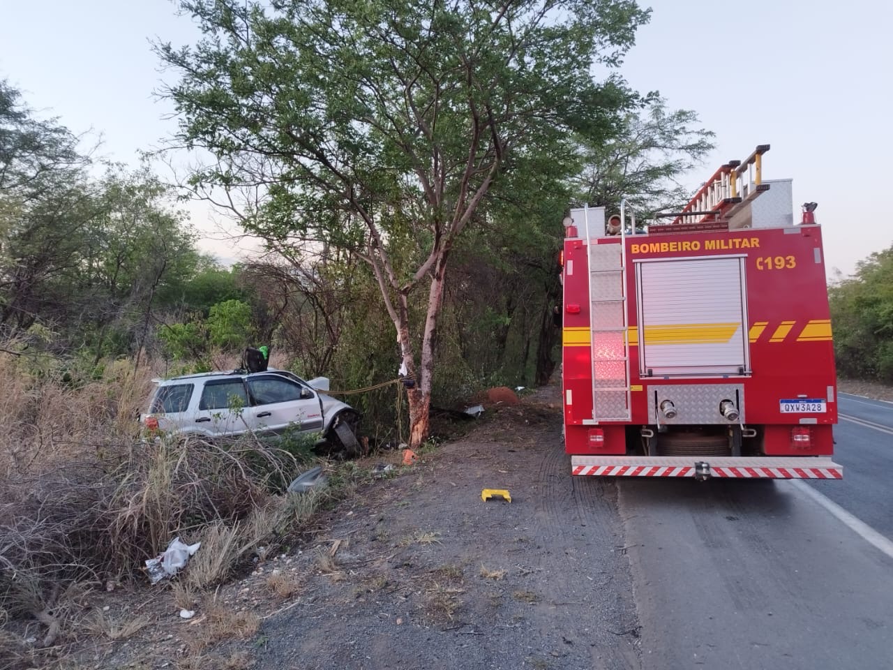 Tragédia na BR 251: choque fatal com árvore deixa quatro vítimas e mobiliza bombeiros em Francisco Sá