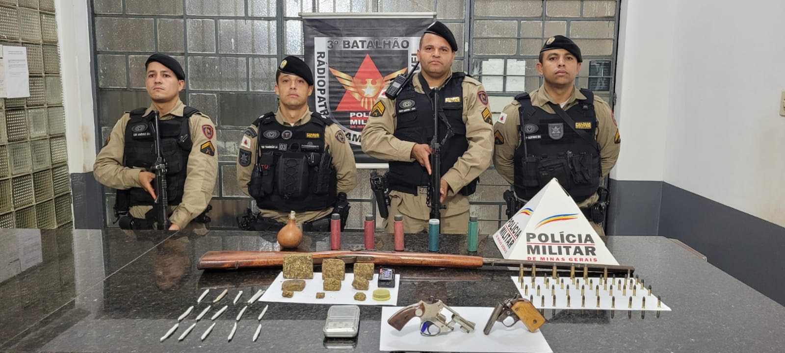 Os resultados da operação foram expressivos, destacando-se a prisão em flagrante de um indivíduo e a apreensão de significativa quantidade de drogas e armamentos. A lista de apreensões inclui 06 tabletes de maconha de grande porte, 03 tabletes de maconha de menor tamanho, 15 cigarros de maconha prontos para venda, 01 revólver Rossi calibre 22, 01 garrucha Castelo cano duplo calibre 22, 01 espingarda polveira, 05 munições calibre 38 marca CBC, 01 munição calibre 32 marca CBC, 41 munições calibre 22 marca CBC, material para recarga de arma de fogo e 01 balança digital.