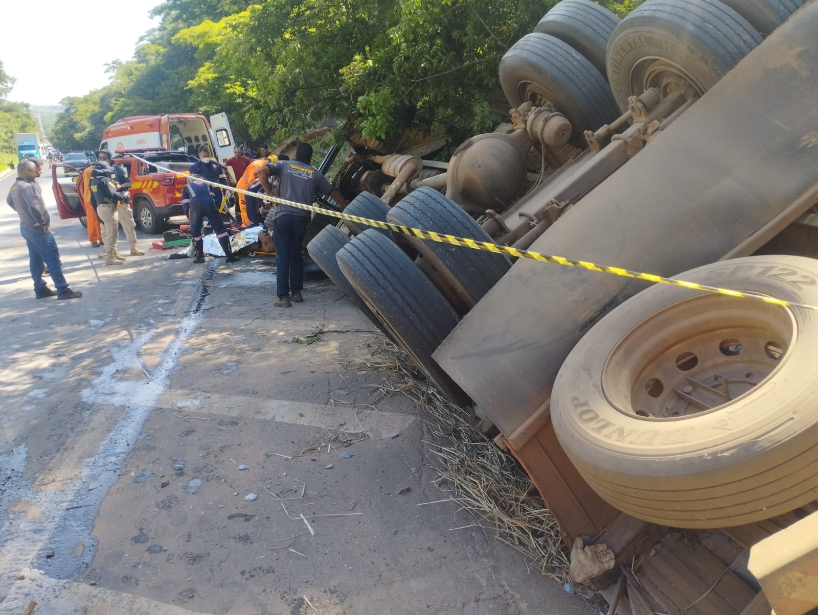 Ao chegar no local, os bombeiros depararam-se com um caminhão capotado no acostamento, após a ponte do km 5, sentido Pirapora/Montes Claros, com o teto no solo e as rodas para cima. Duas pessoas estavam presas às ferragens, sendo o motorista localizado embaixo da cabine. Após a estabilização do veículo, a guarnição utilizou um extensor hidráulico para garantir o acesso seguro às vítimas.