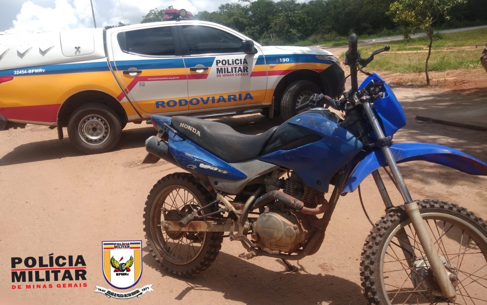 Durante o patrulhamento de trânsito, os policiais visualizaram uma motocicleta sem placa de identificação, o que os levou a realizar uma abordagem. Após uma minuciosa vistoria, constatou-se que o número de chassi e motor estavam suprimidos.