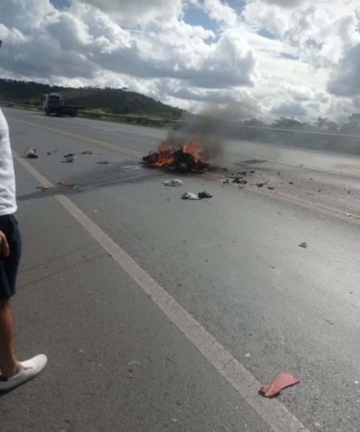 No momento da colisão, o veículo pegou fogo, resultando na carbonização do piloto. A passageira da motocicleta foi arremessada para o acostamento, vindo a óbito no local do acidente. O condutor da carreta saiu ileso.